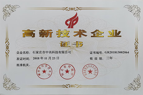 榮獲“石家莊市科技小巨人企業(yè)”稱(chēng)號;榮獲“高新技術(shù)企業(yè)”稱(chēng)號。