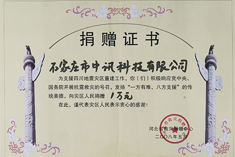 在國家和人民遇到如地震、疫情等災害時(shí),公司及全體員工都積極捐款捐物支援國家;資助失學(xué)兒童,關(guān)心下一代的成長(cháng)。
